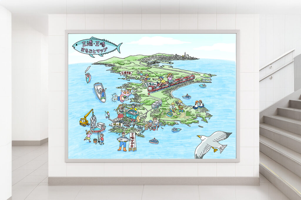 三浦半島 観光イラストマップ・鳥瞰図を制作しました。